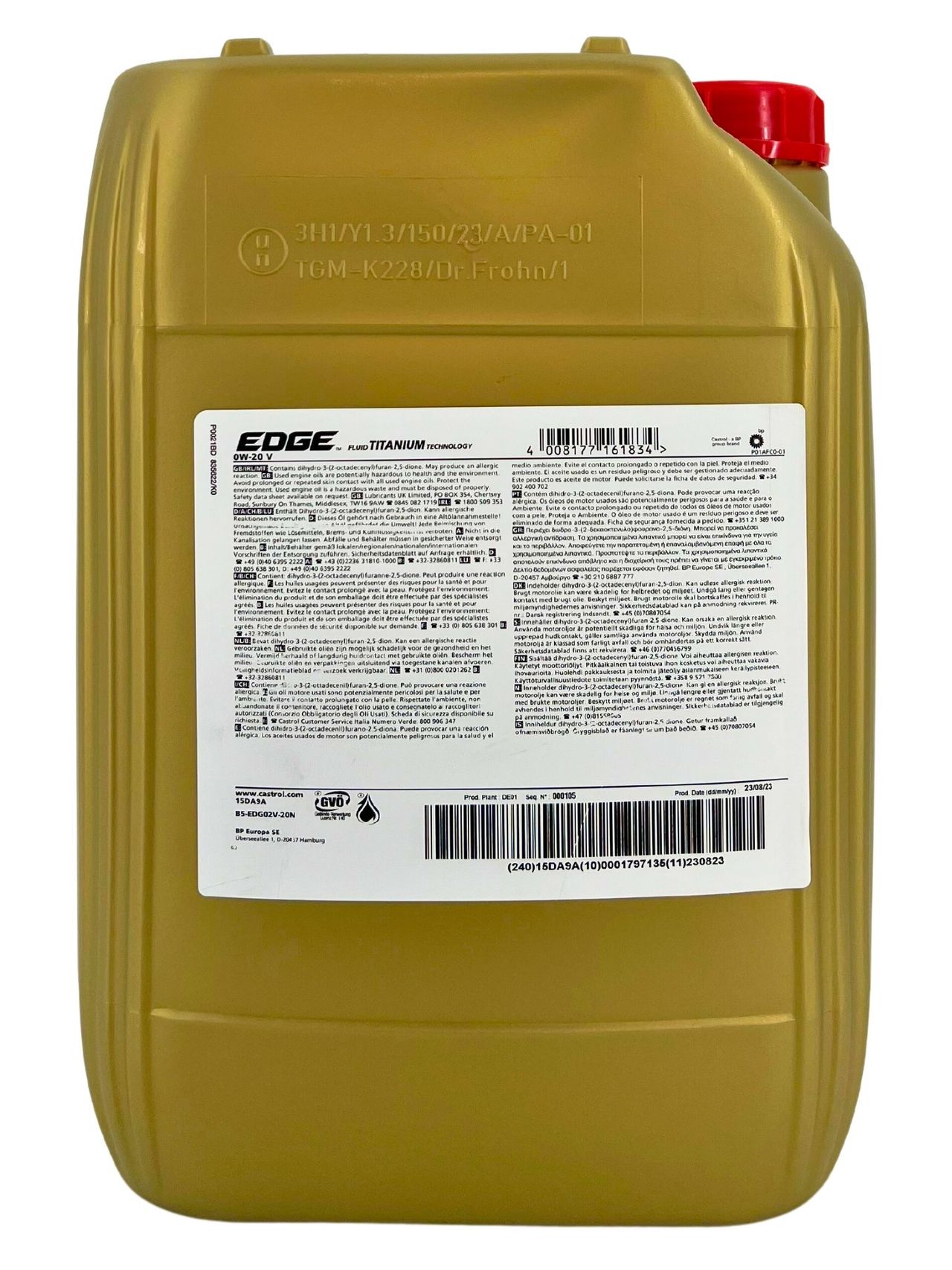 Produktinformationen "Castrol Edge 0W-20 V 20 Liter"